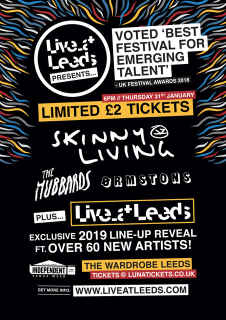 In honour of the occasion, this official launch show will also preview three of the many promising local acts set to appear at Live At Leeds 2019 this May, with exhilarating live performances on the night.
