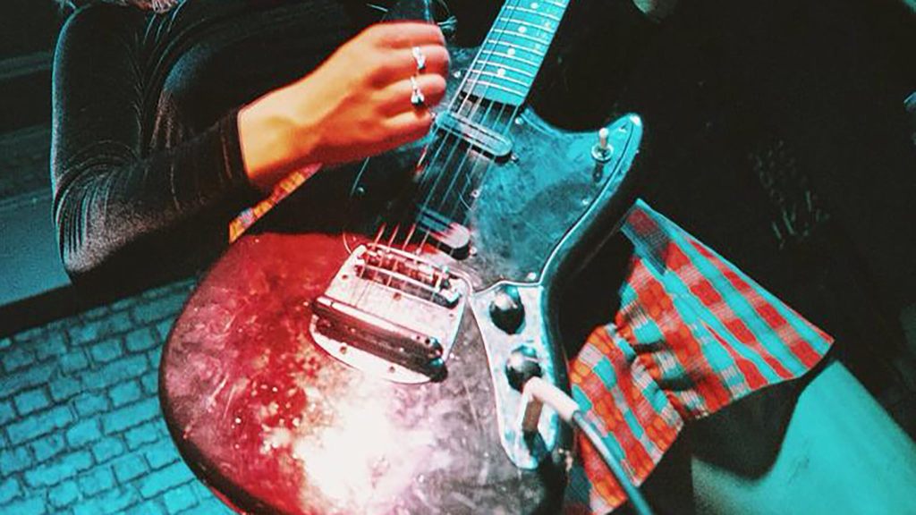 Tonight’s headliners, The Mysterines are Lia Metcalfe (vocals/guitar), George Favager (bass) and Chrissy Moore (drums). They’ve had quite a year. BBC Introducing sessions, supporting The Amazons on a nationwide tour, and Paul Weller Black Barn Sessions are just a snippet of their highlights. Wearing corresponding black T-shirts (George’s is the classic ‘Nirvana Smiley’, Lia’s carries the legend ‘Sinners are Winners’ and Chrissy’s isn’t on long enough to make out!), they enter the stage to The Beastie Boys Sabotage. The mayhem is about to be unleashed.
