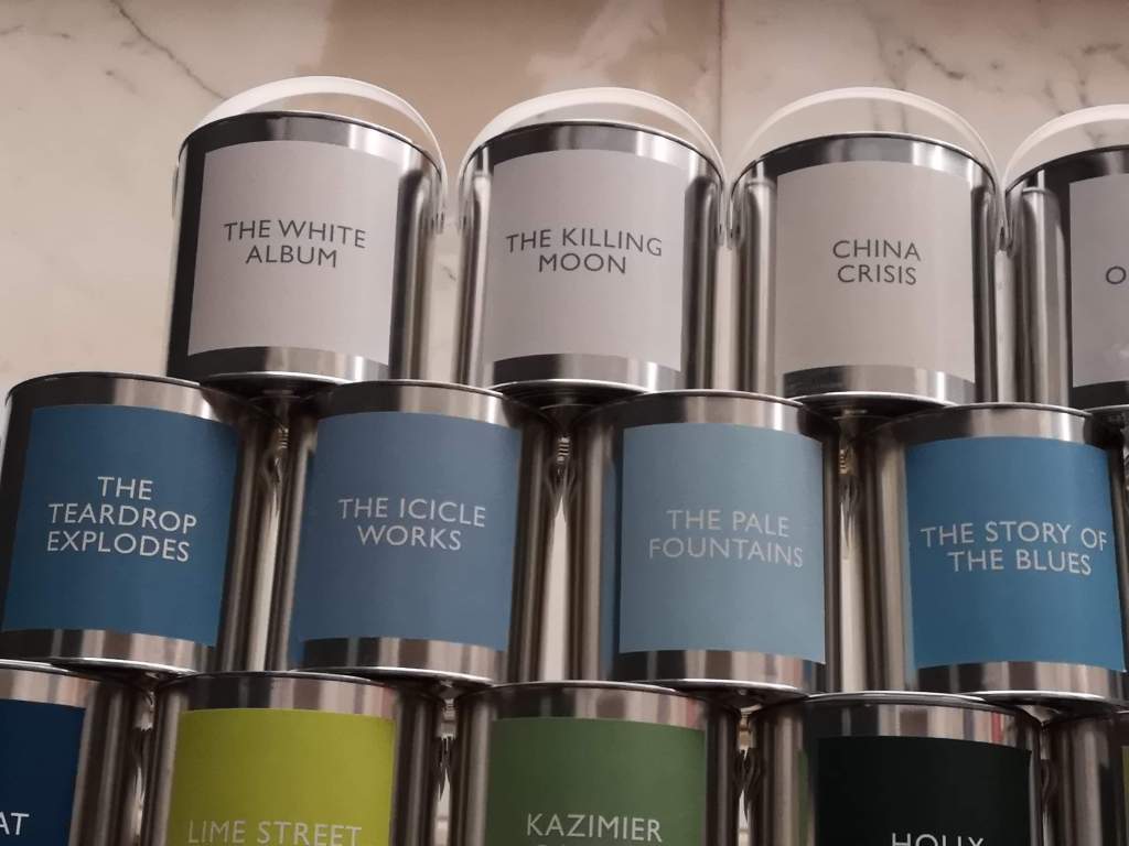 There is a return of Dorothy’s ‘The Colours of Liverpool’ concept too, this time as an installation. Opposite the cafe-bar you will find three rows of tins of paint neatly stacked. Read the labels carefully. Each tin is a reference to a famous landmark, band or song. You can imagine decorating your front room with a tin of ‘The White Album’ and doing a feature wall in ‘The Story of the Blues’. Simultaneously simple and ingenious.