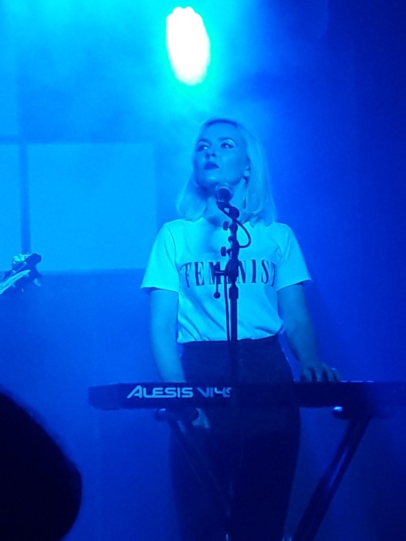 And finally, to the gig itself. Singer, writer and guitarist, Louisa Roach is the multi-talented driving force behind She Drew The Gun. For tonight’s thoroughly entertaining, and hugely enjoyable set, she is joined by the energetic Lucy Styles on keyboards, guitar and expressionist dance moves; the wonderfully named Jimmy Moon on rhythm guitar; Jack Turner on bass; and finally tucked away in the corner at the back, Jim Sharrock on drums. If that last name rings a bell (or cymbal) it’s because Jim is a relative of Chris Sharrock drum-meister with The Icicle Works and World Party, and any number of bands that has included one or more of the Gallagher brothers.
