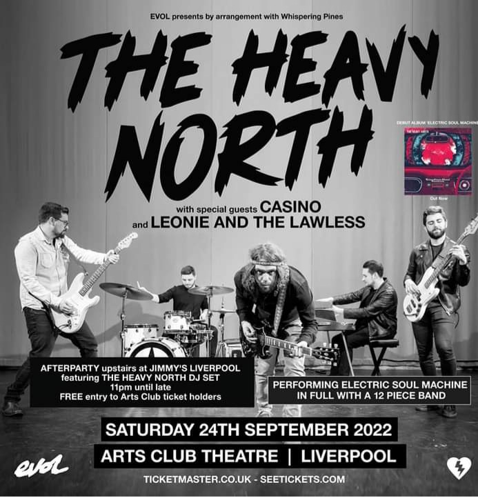 The infinite variety of set times and my own inattention to detail never cease to amaze me. I once turned up at 8 pm to a well-known Liverpool venue to be told the evening’s headliners would not be on stage for another 3 and-a-half hours. Tonight, arriving at 7 pm at Liverpool Arts Club‘s Theatre to see The Heavy North‘s hometown gig, I had already missed the evenings opening act Leonie and the Lawless.