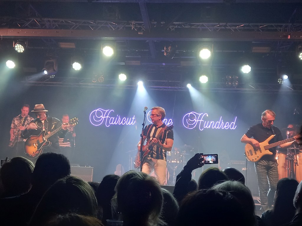 Haircut 100 entered the stage of a packed Liverpool Academy to an arresting mash-up of The Thunderbirds Theme and Michael Caine ‘The Italian Job‘ dialogue. Perhaps their intention was to blow the bloody doors off. Haircut 100 opened up with the energetic Baked Beans and any nagging doubts anyone may have had about the band’s abilities having suffered from the ravages of time were immediately put to bed. Hayward knowingly hinted at such thoughts as he smilingly said ‘Bit worried about coming out to see a bunch of old blokes tonight weren’t you?’. I’m not entirely sure that the ‘old blokes’ remark is completely accurate. The ever-young Hayward must have an aging portrait locked away in an attic somewhere. The band, including original bassist Les Nemes, a three piece horn section, and additional percussion were on the money from the start. Hayward’s vocals were as clear, sharp and vibrant as they were all those years ago. Just to make sure the crowd were totally at ease, second song of the evening was one the band’s biggest hits Love Plus One.
